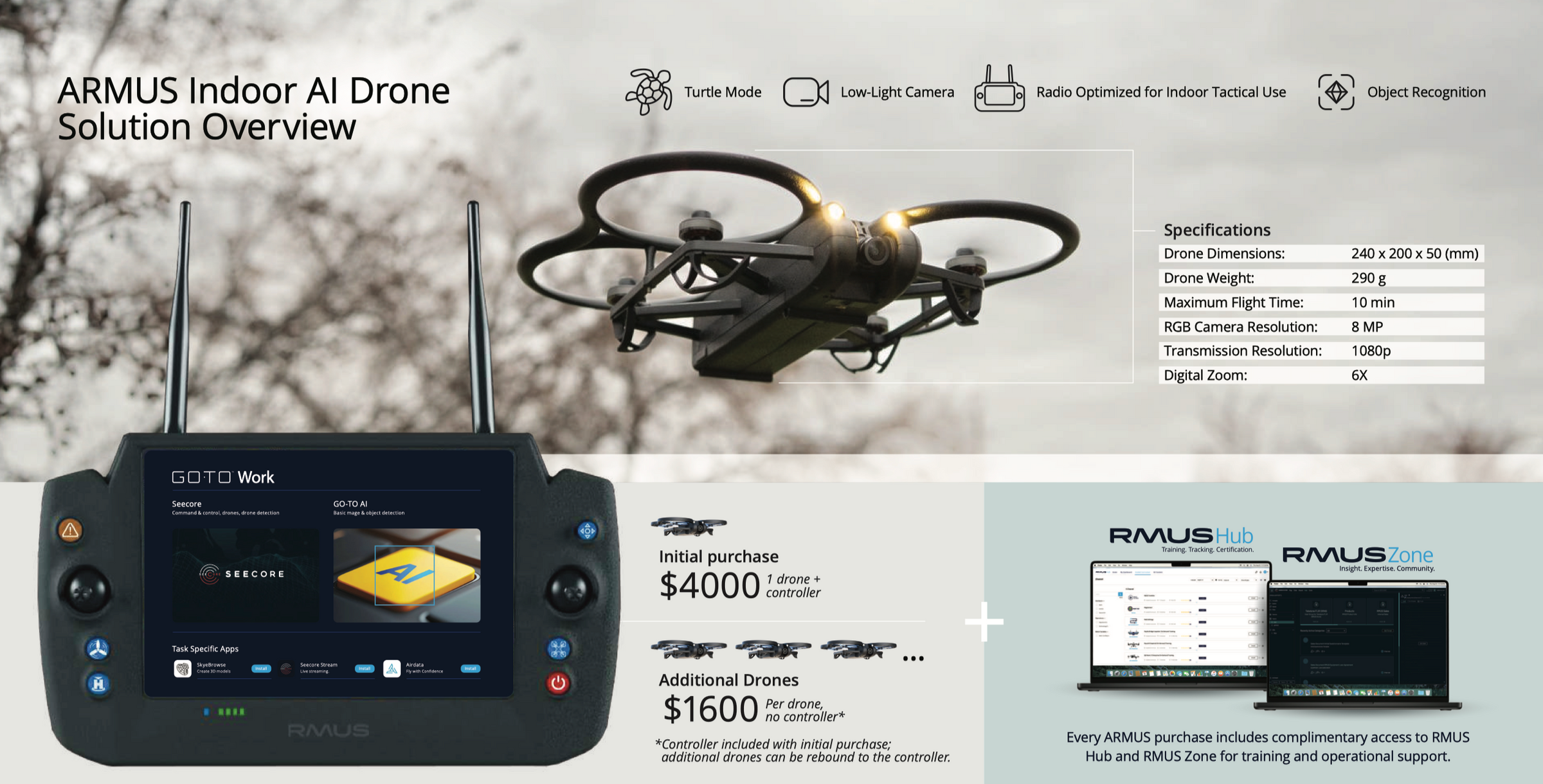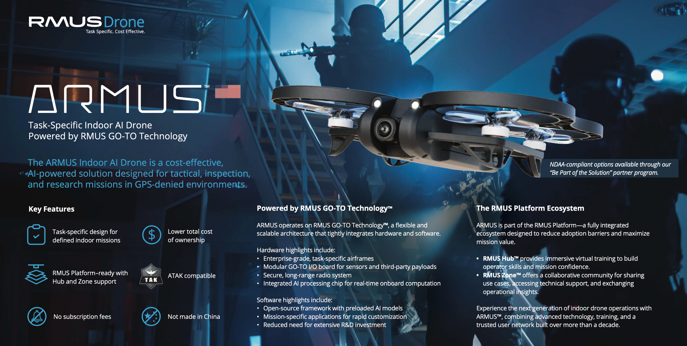 The ARMUS a cost-effective, AI-powered drone for tactical, inspection, and research use cases .